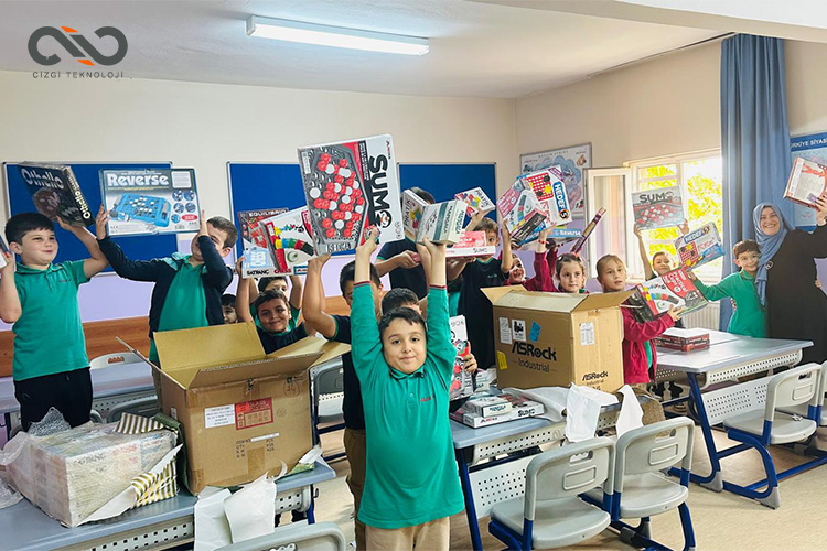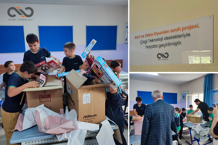 Most recently, we visited Abidin Gün Primary School to support their “Mind and Intelligence Games Project.” With the contributions of Çizgi Teknoloji, the project transformed into a special classroom designed to enhance students’ mental development and creative thinking skills.